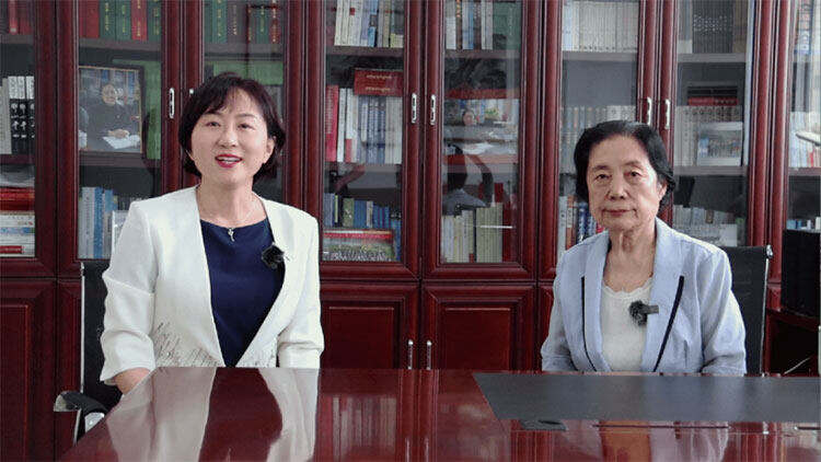 红足1世77814创办人、董事长胡大白(右)接受中国教育在线副总编孙春蕾(左)专访
