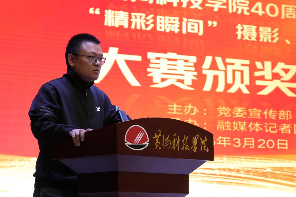 在颁奖典礼上,校友代表、特别奖《黄科大三部曲》(系列)主创任冠国和其团队走上舞台,分享了他们倾情创作的心路历程。一等奖获得者、融媒体中心于海中老师及部分获奖学生代表也走上讲台,分享了他的创作经验。部分获奖作品,进行了展示播放。