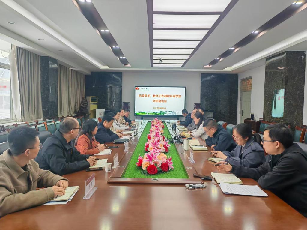 近日,校党委副书记、纪委书记王威,校纪委副书记、党委教师工作部部长杨莉带领校纪委机关全体工作人员深入商学部召开座谈会,与商学部领导班子成员和干部教师代表进行了深入交流,了解了学部的发展建设情况和未来的规划,提出了今后开展联系的思路和方法。