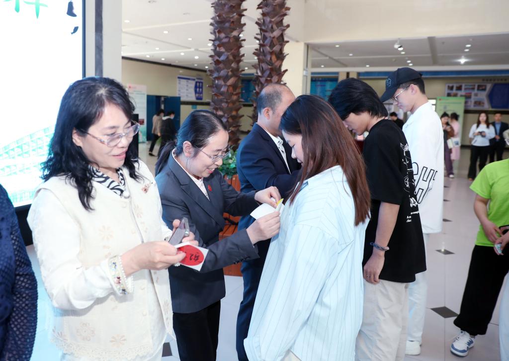 各教学单位领导为本单位参赛的首支队伍授予队标,与会领导嘉宾共同启动了读书节“资源探秘挑战赛”。