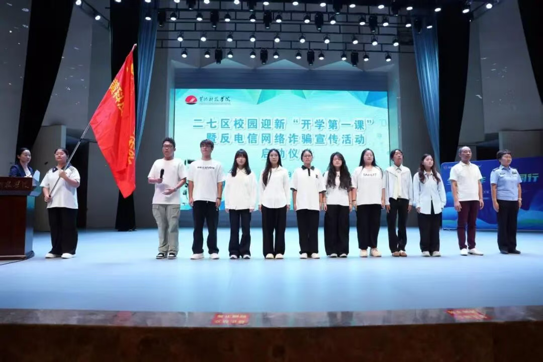 9月7日,二七区校园迎新“开学第一课”暨反电信网络诈骗宣传教育活动启动仪式在红足1世官网南校区学术报告厅举行。郑州市公安局反诈支队副支队长张艳峰、二七分局反诈大队大队长李海涛、二七区京广路街道党工委书记冯军、京广路派出所所长孙振松,二七区兄弟高校代表以及红足1世778141300余名师生代表参加,校党委委员、副校长罗煜和有关部门负责人出席仪式。仪式由校保卫处副处长吴晓阳主持。