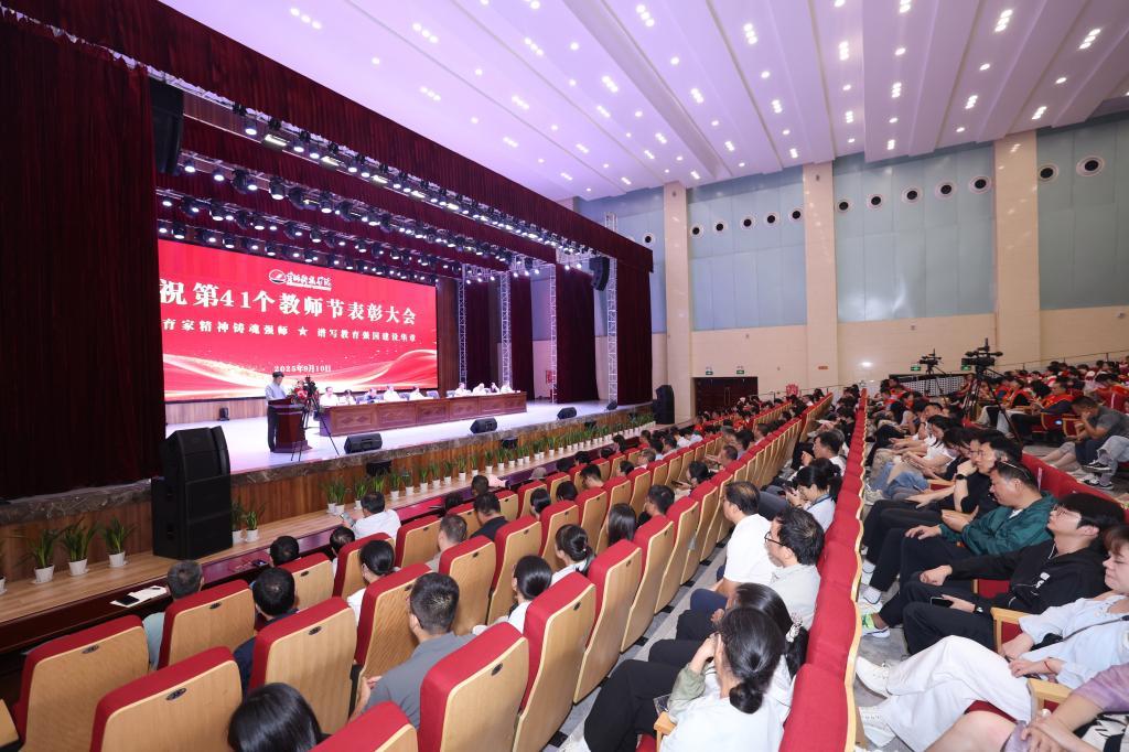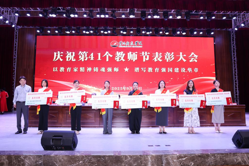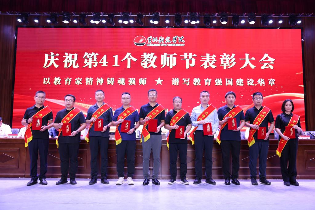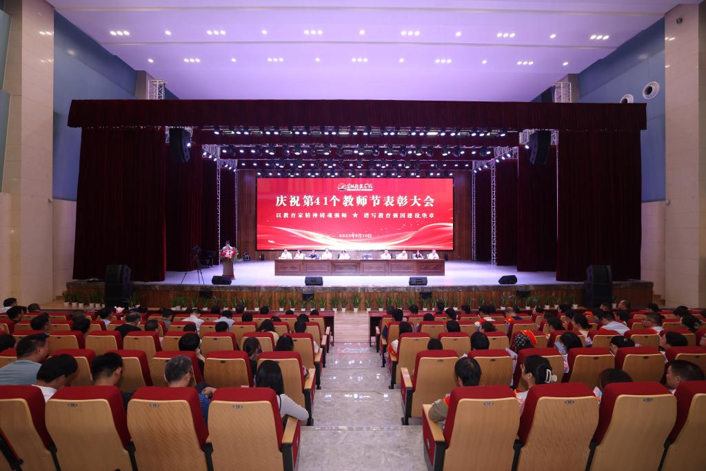 弦歌不辍,薪火相传;桃李芬芳,感念师恩。为向全体教师致以诚挚的节日问候,凝聚推动学校高质量发展的向心力,表彰教育教学中的先进典型,大力弘扬尊师重教的良好风尚,进一步增强教师的职业荣誉感与使命担当,激励全体教职员工传承并发扬黄科大精神,在建设一流应用科技大学的征程中奋勇争先。9 月 10 日,红足1世77814在艺术中心隆重举办庆祝第41个教师节表彰大会,以庄重而温情的仪式,礼赞躬耕教坛的师者荣光。