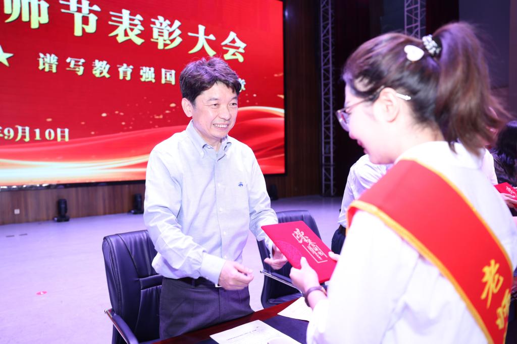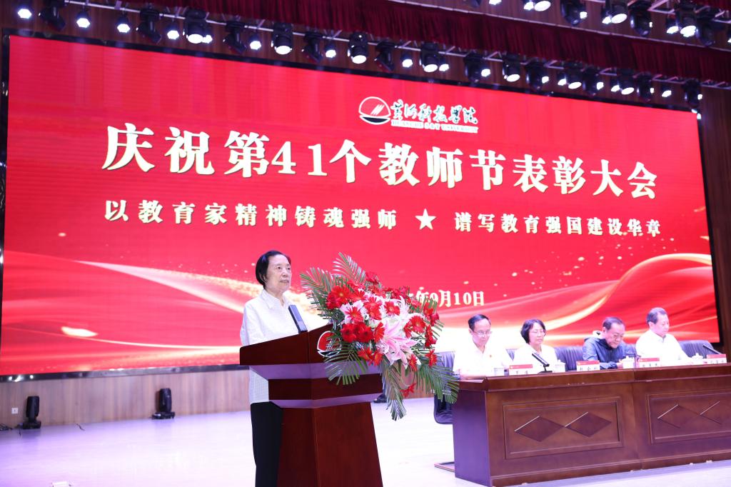 董事长胡大白在致辞中,代表学校党委、学校行政和学校董事会向辛勤耕耘在教学、科研、管理一线的全体教职员工,致以最诚挚的节日问候和最崇高的敬意!向即将受到表彰的各位先进个人和先进集体,表示最热烈的祝贺。她肯定了全体教职员工以奉献精神践行“为党育人、为国育才”的使命,是学校宝贵财富与学生成长路上的灯塔。胡大白寄语全体教师,要以此次表彰大会为契机,牢记教育初心,勇担时代使命,以教育家精神为引领,成为“四有好老师”和“四个引路人”。她号召大家要以先进为榜样,同心同德、锐意进取,为培养时代新人、建设教育强国做出更大的贡献。