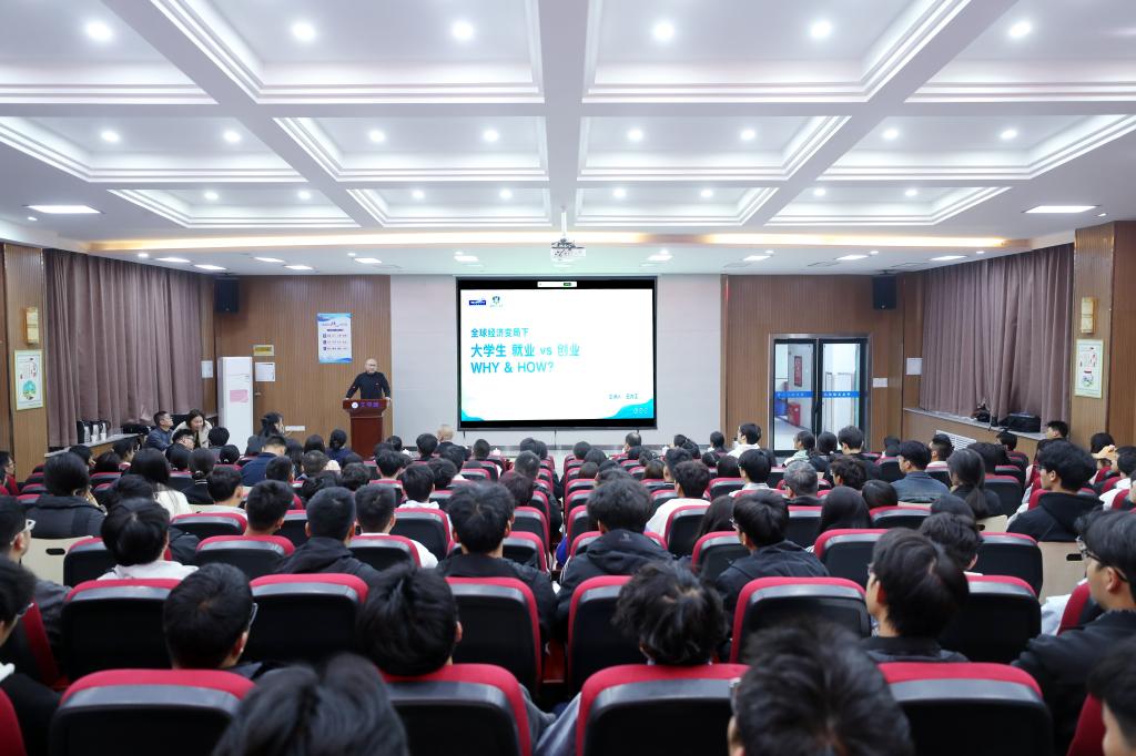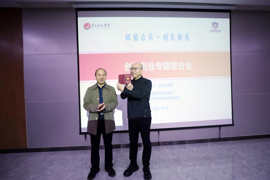 王为工教授在创新创业领域拥有深厚的理论造诣和丰富的实践经验。在受聘为创新创业学院院长后,他为在场师生带来了一场精彩纷呈、启人心智的专题报告。他的报告高屋建瓴又深入浅出,话语如春风化雨,深深走进了青年学子的心里。报告中,前沿的理念与鲜活的案例交织,深刻的思考与实用的建议并存,极大地激发了师生们的创新思维与创业热情。在互动环节,学生们踊跃提问,与这位新院长进行了坦诚而深入的交流,现场思想碰撞,气氛活跃。