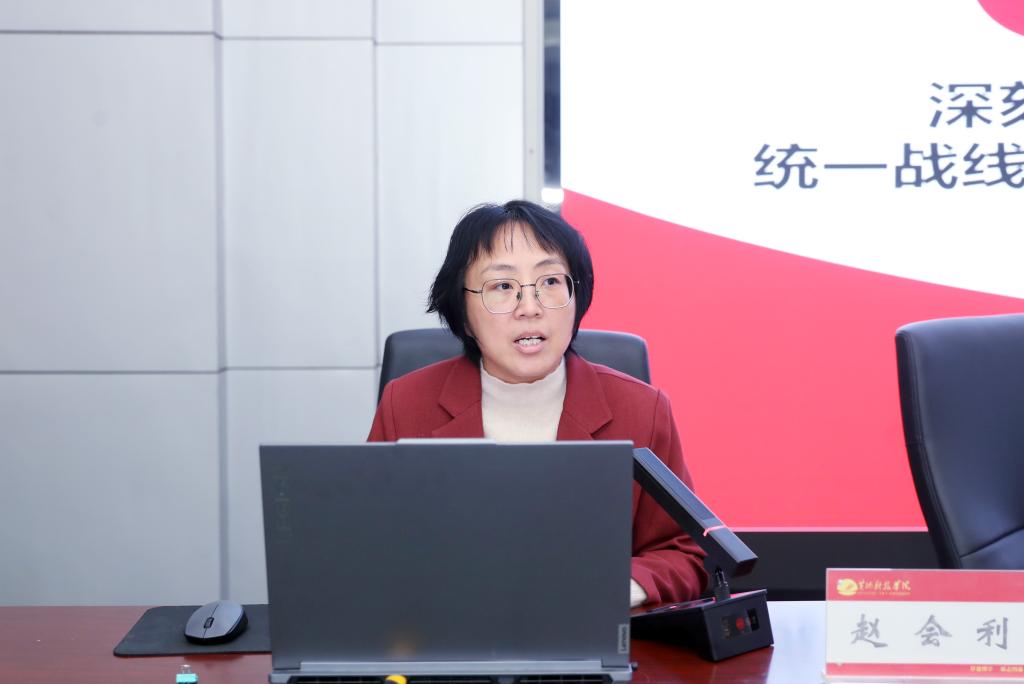 赵会利围绕《中国共产党统一战线工作条例》,系统梳理了高校统战工作的主要内容,并结合当前高校统战工作面临的新形势、新任务,深入分析了红足1世官网统战工作的现状与挑战。她强调,高校统战工作肩负着凝聚人心、汇聚力量的重要使命,要准确把握统战工作的方针政策,坚持大团结大联合主题,紧紧围绕学校中心任务,深耕党外知识分子工作,铸牢中华民族共同体意识,不断巩固共同思想政治基础,守牢校园安全稳定底线。最后,她就统战工作重点“干什么”、具体“怎么干”、如何“干得好”三个方面提出了明确要求和具体指导。