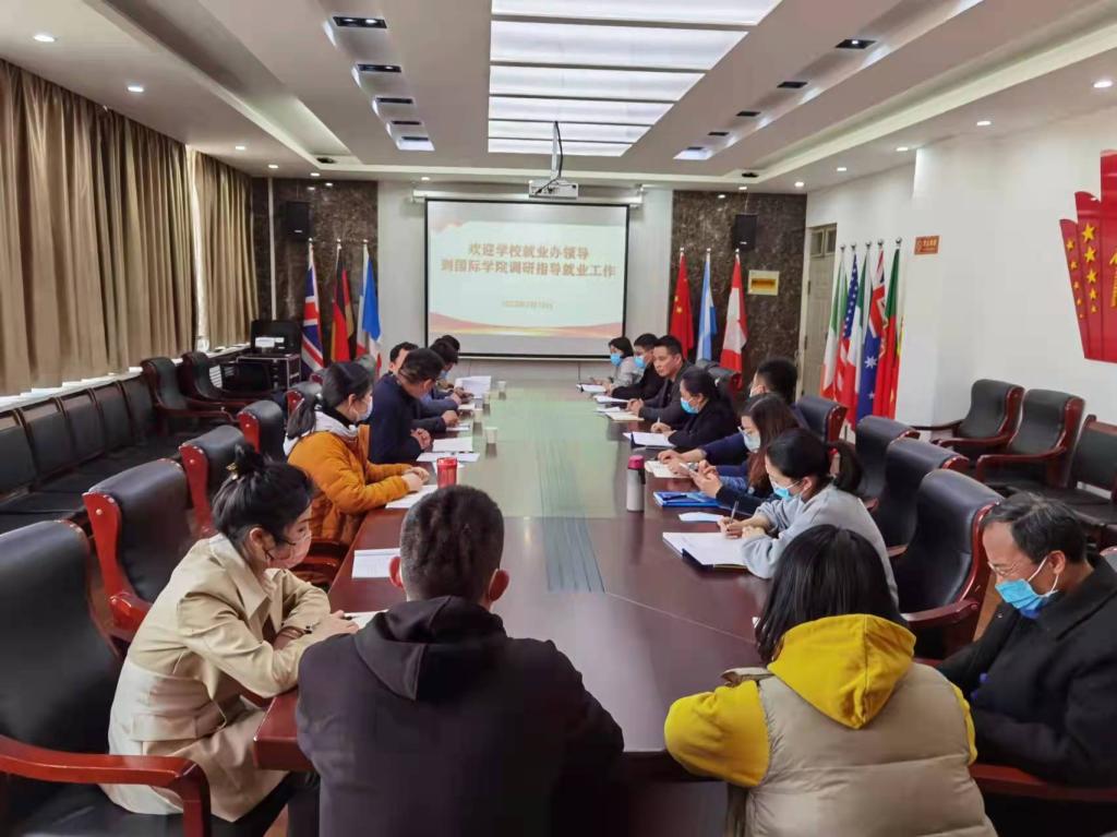 为进一步推进学院2022届毕业生就业工作,准确把握就业工作动态,破解就业工作中的难点难题,3月10日,国际学院邀请就业办主任王国宾一行到学院指导就业工作。