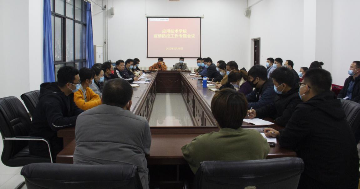3月16日,应用技术学院召开疫情防控工作专题会议,落实疫情防控要求,确保校园安全稳定。会议由学院分党委书记张丕万主持,院长徐斌,副院长杨宗霄,学院各部门负责人、各防控网格长参加会议。