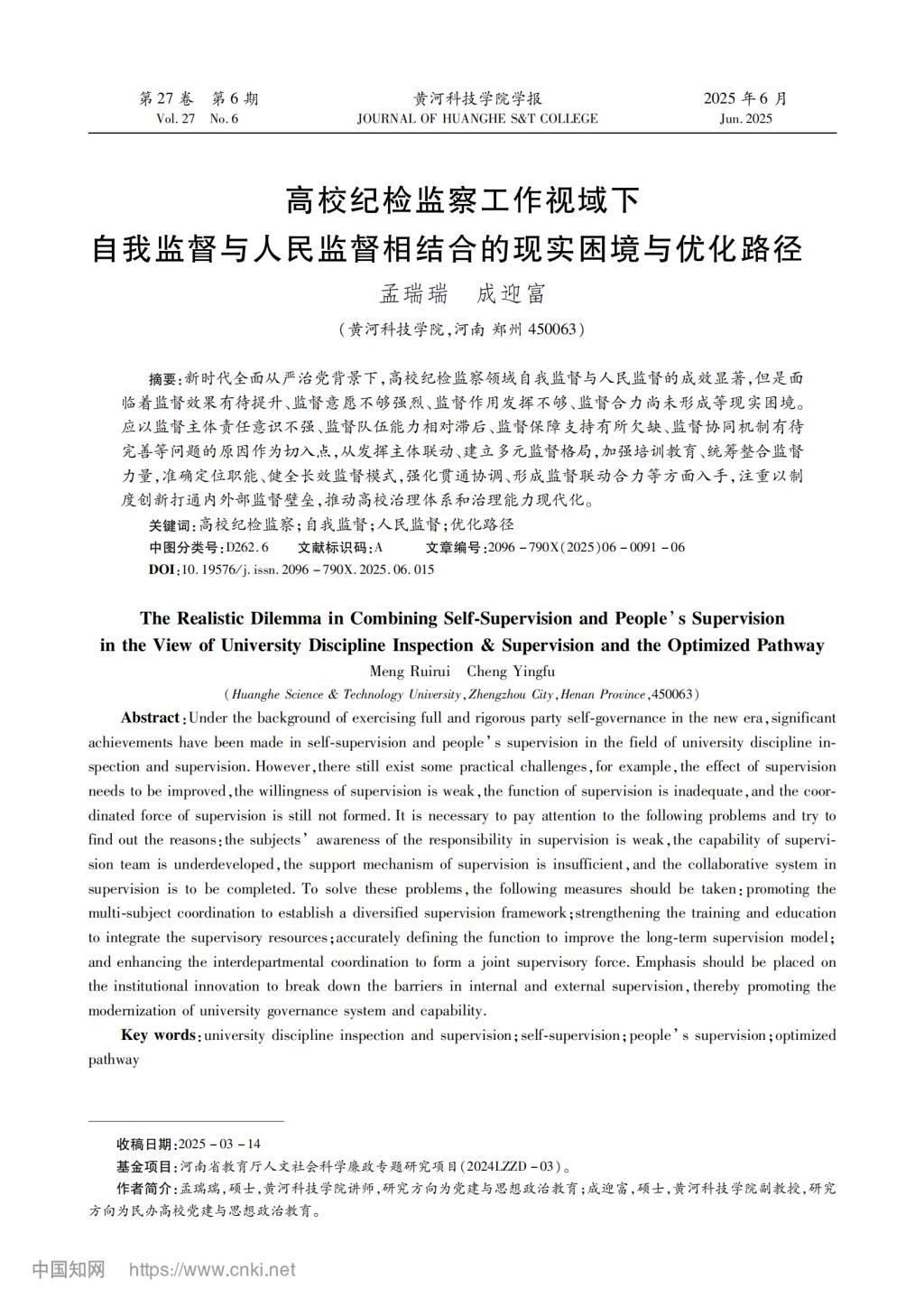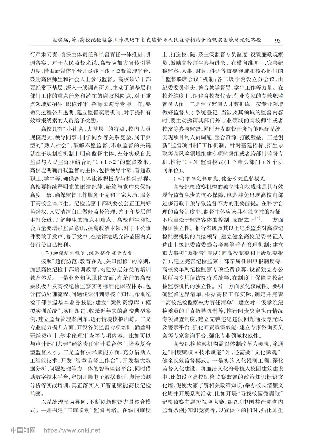 廉政专题研究 | 孟瑞瑞 成迎富 《高校纪检监察工作视域下自我监督与人民监督相结合的现实困境与优化路径》