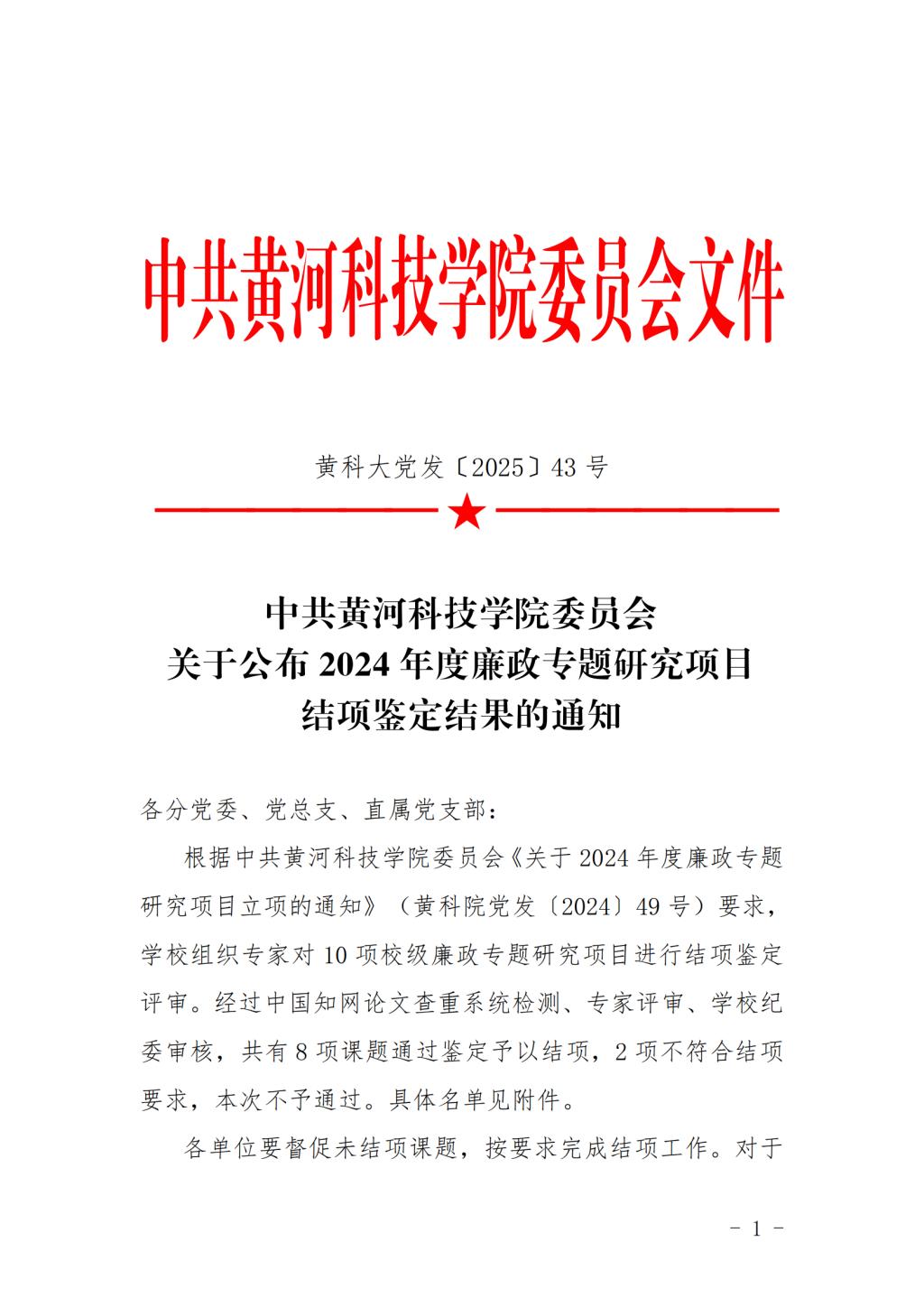 关于公布2024年度廉政专题研究项目结项鉴定结果的通知